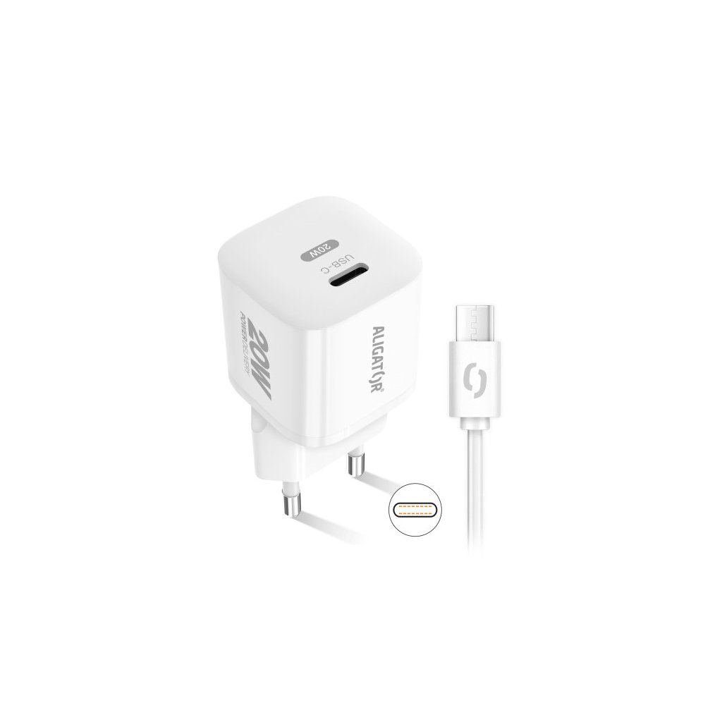 Rychlá nabíječka ALIGATOR Mini, PD 20W, USB-C/USB-C kabel, bílá