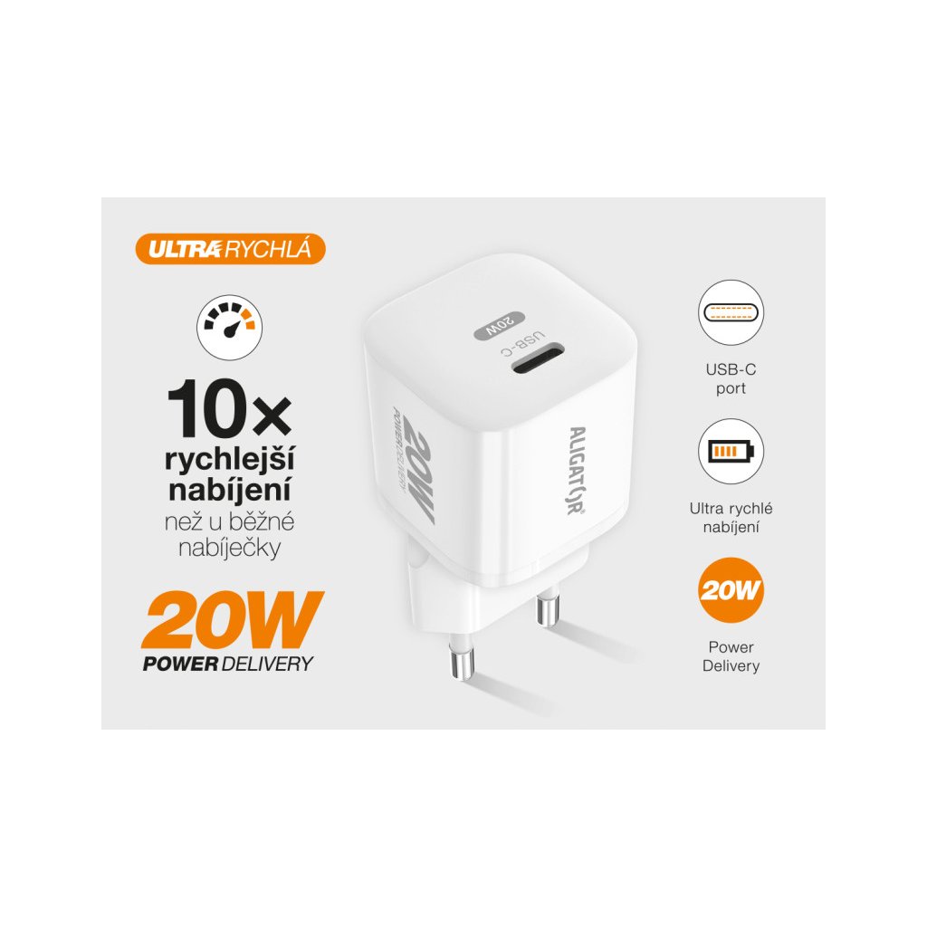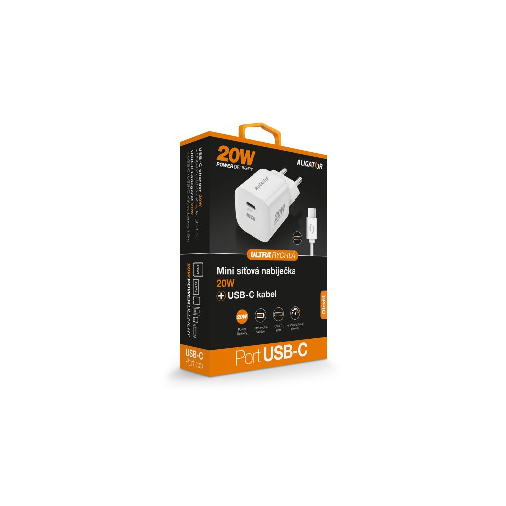 Rychlá mini síťová nabíječka USB-C ALIGATOR Power Delivery 20W s kabelem USB-C/USB-C