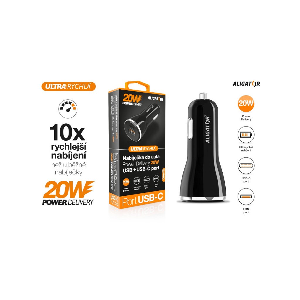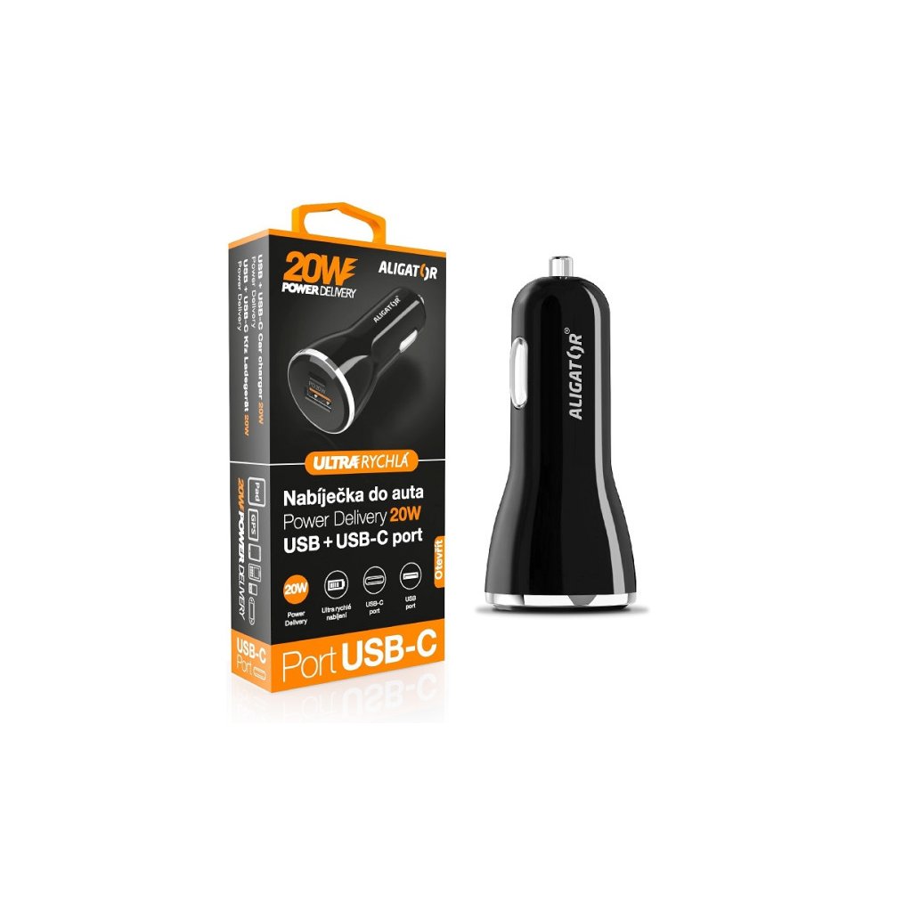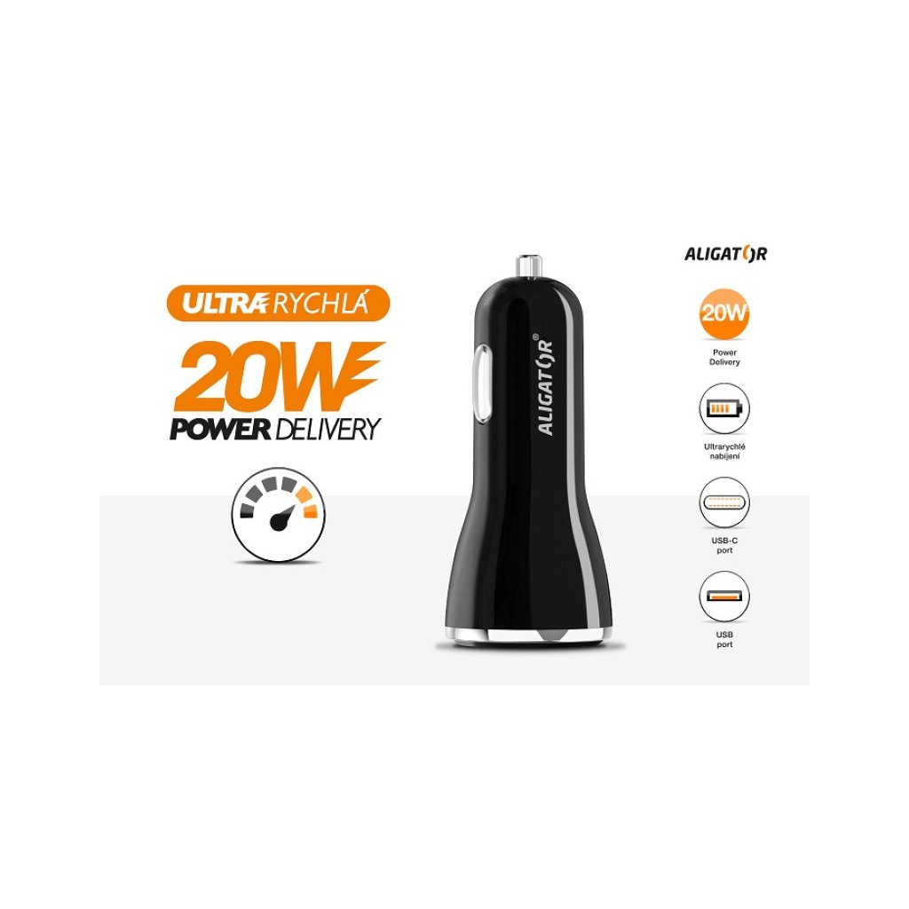 Chytrá nabíječka do auta ALIGATOR Power Delivery 20W, USB-C + USB-A