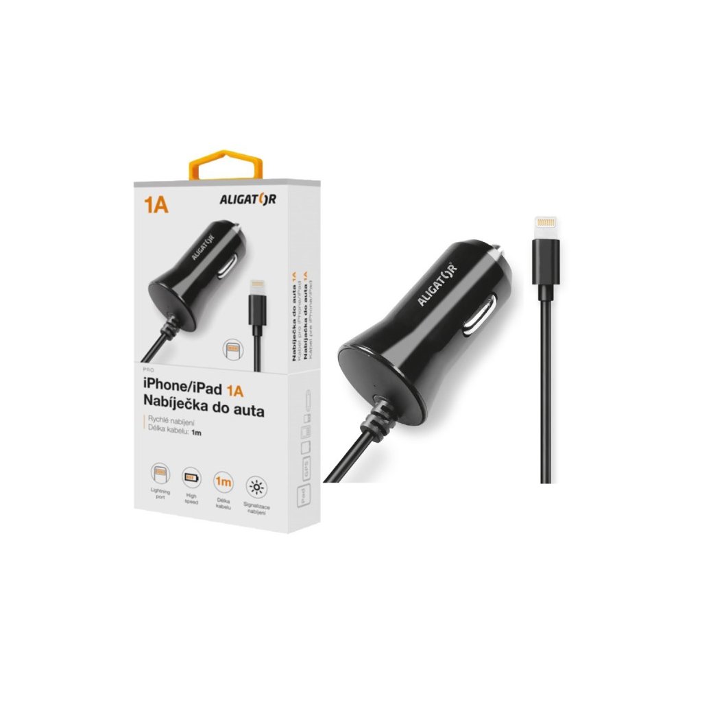 Nabíječka do auta ALIGATOR pro iPhone, 1A, Turbo charge, černá