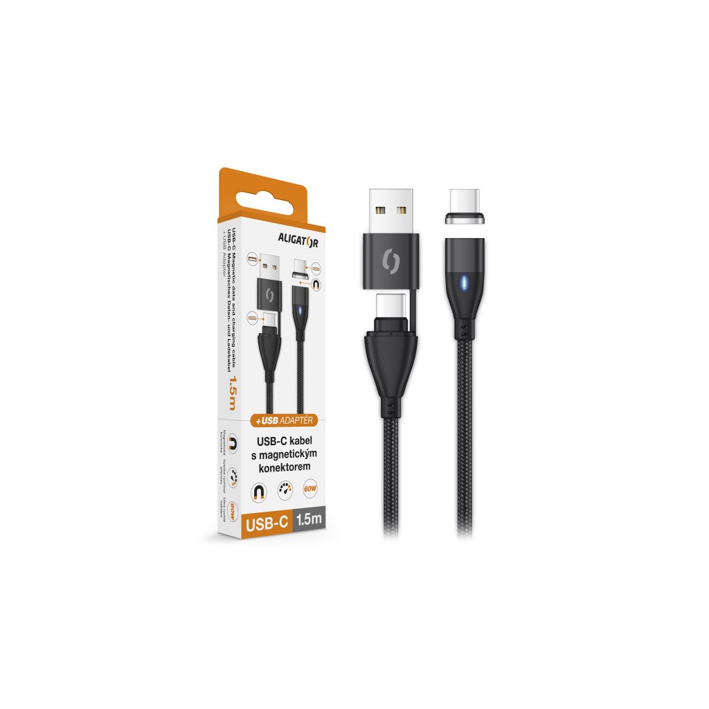 Datový kabel ALIGATOR MAGNETIC 3A 65W, USB-C+USB/USB-C 1,5m