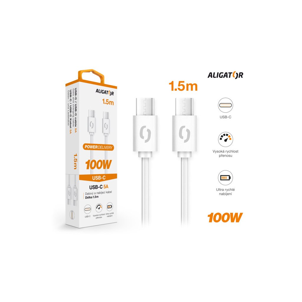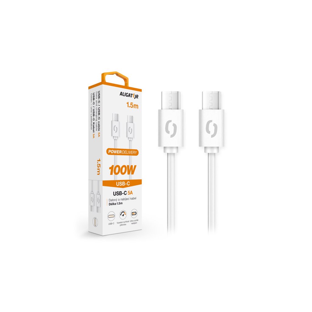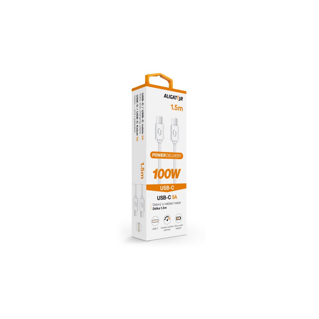 Datový kabel ALIGATOR POWER 100W, USB-C/USB-C 5A, 1,5m bílý