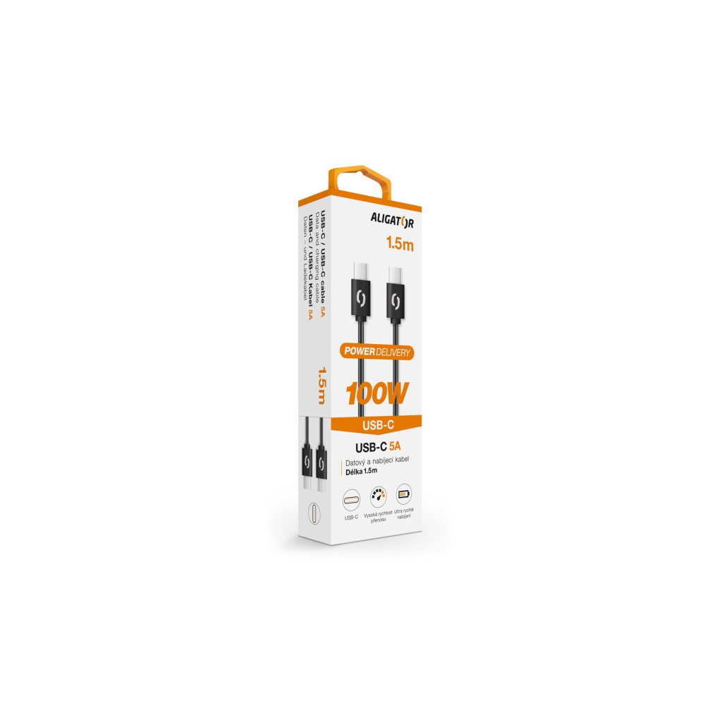 ALIGATOR POWER špičkový USB-C/USB-C kabel nejvyšší kvality, o výkonu 100W a možností nabíjení až 5A.