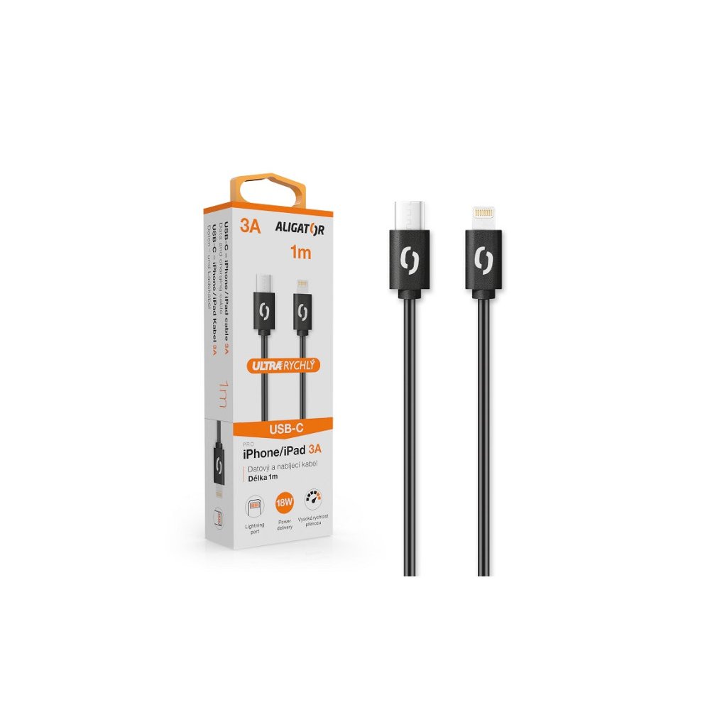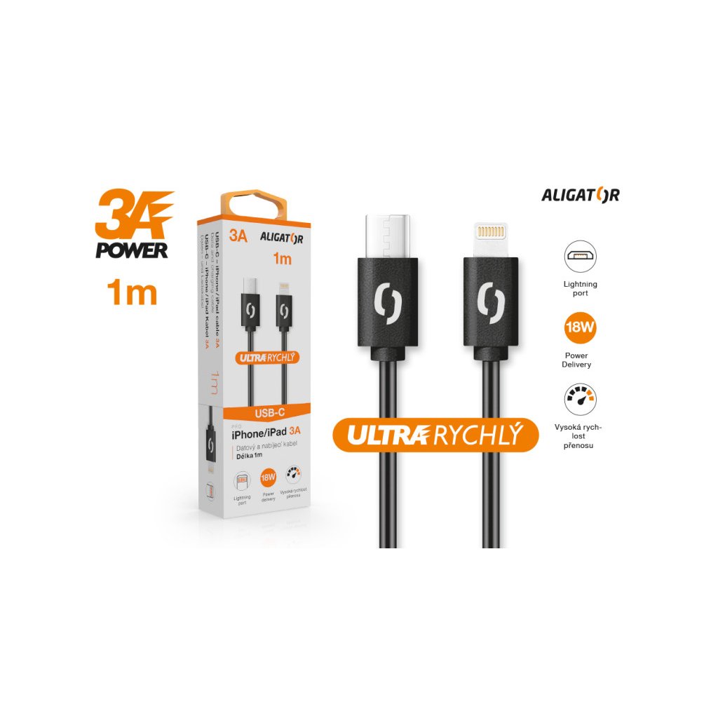 Datový kabel ALIGATOR POWER 3A, USB-C/Lightning, 1m černý