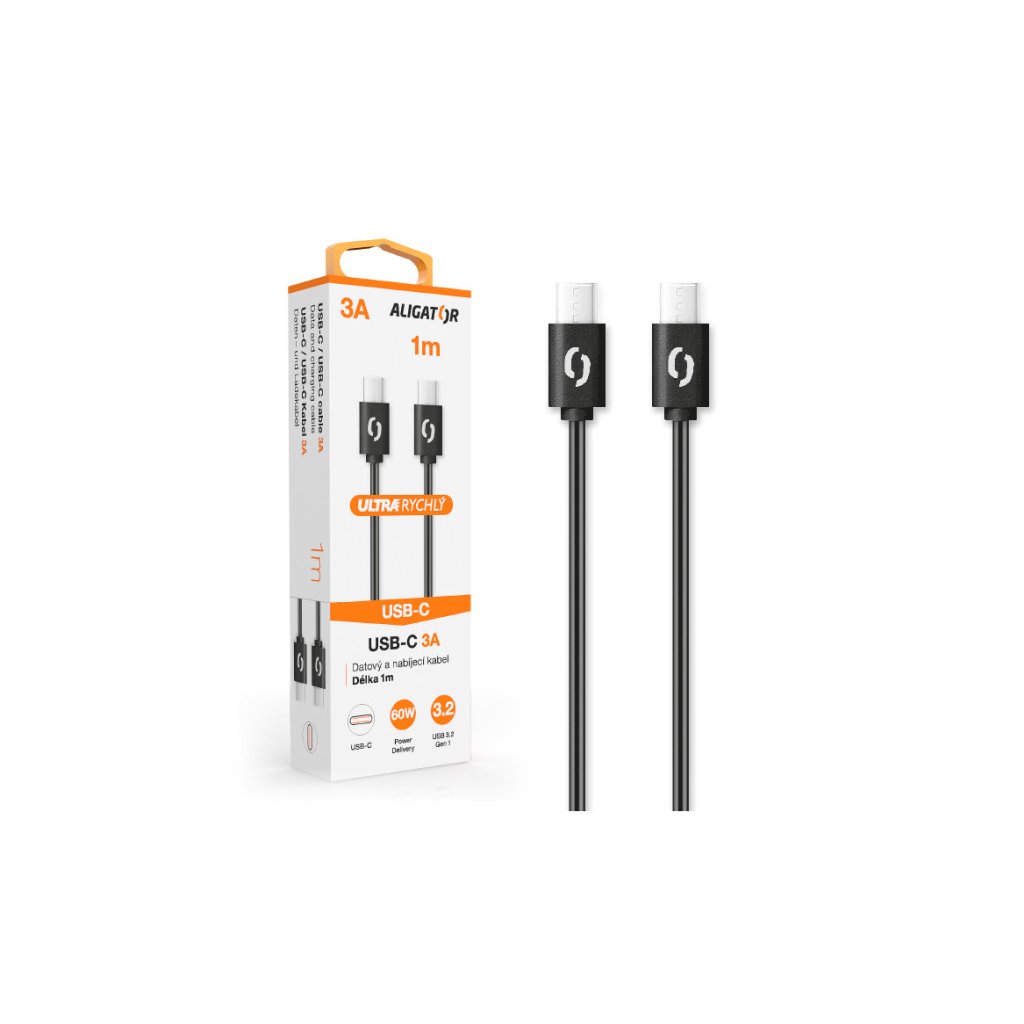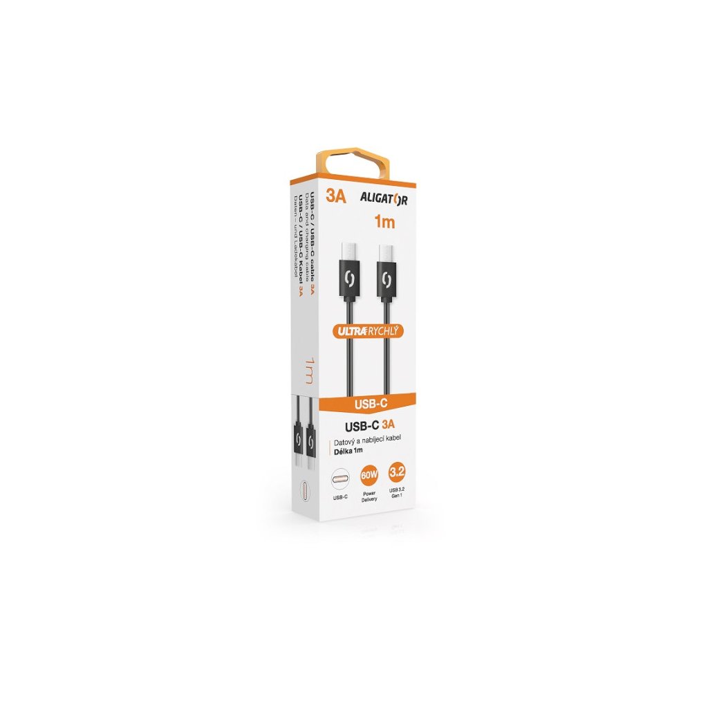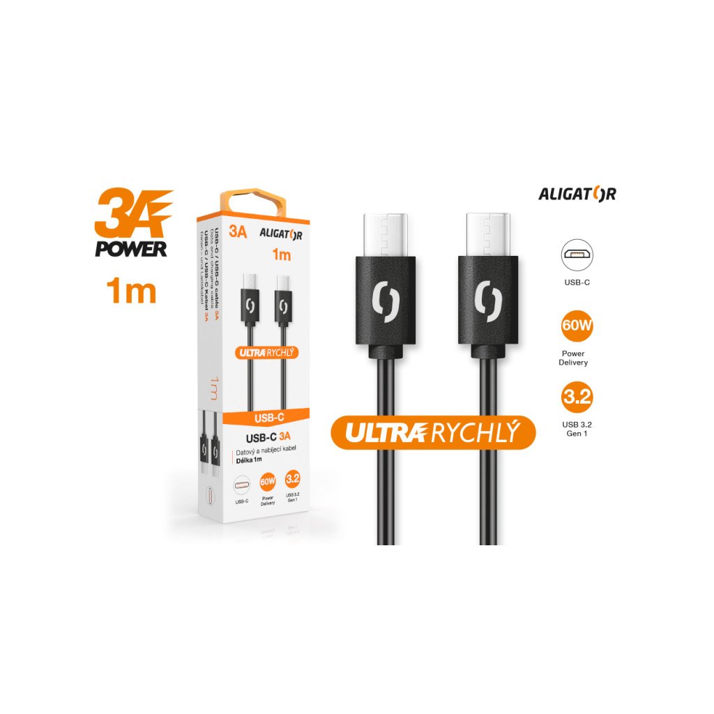 Datový kabel ALIGATOR POWER 60W, USB-C/USB-C 3A, 1m černý