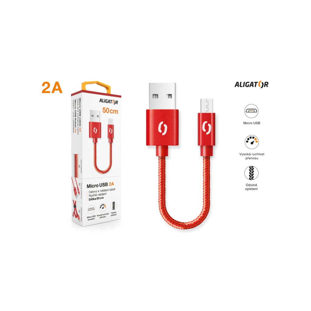 Datový kabel ALIGATOR PREMIUM 2A, Micro USB 50cm červený