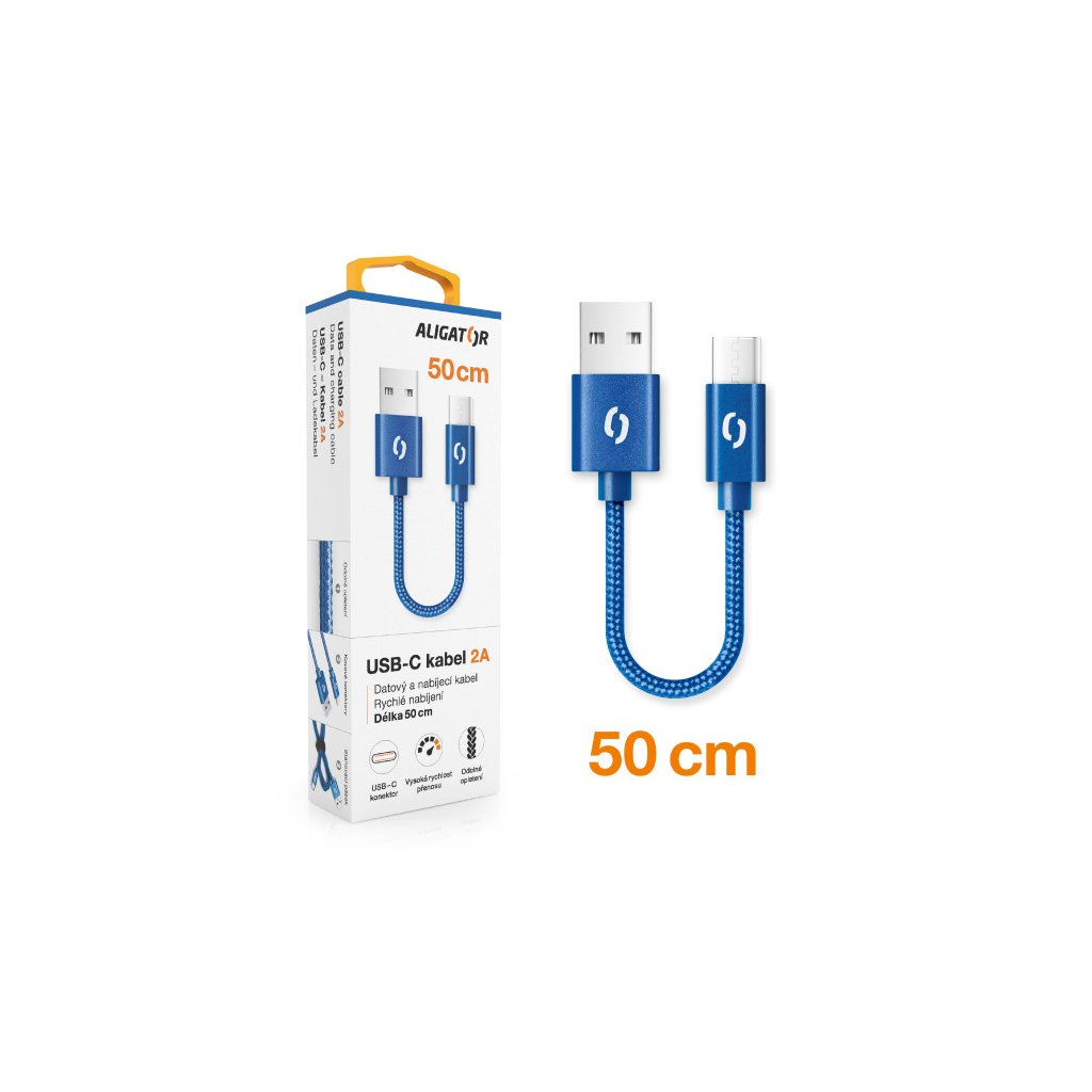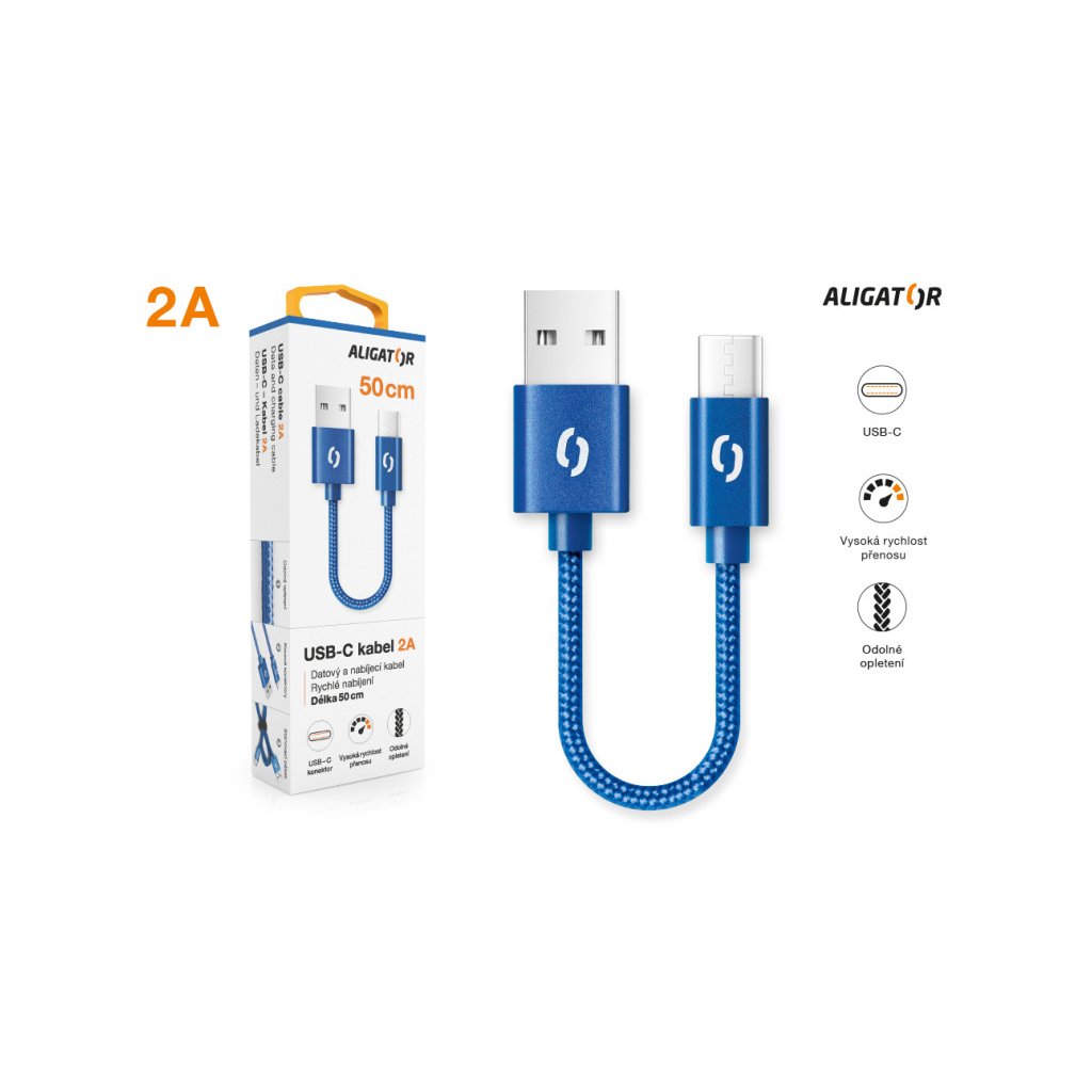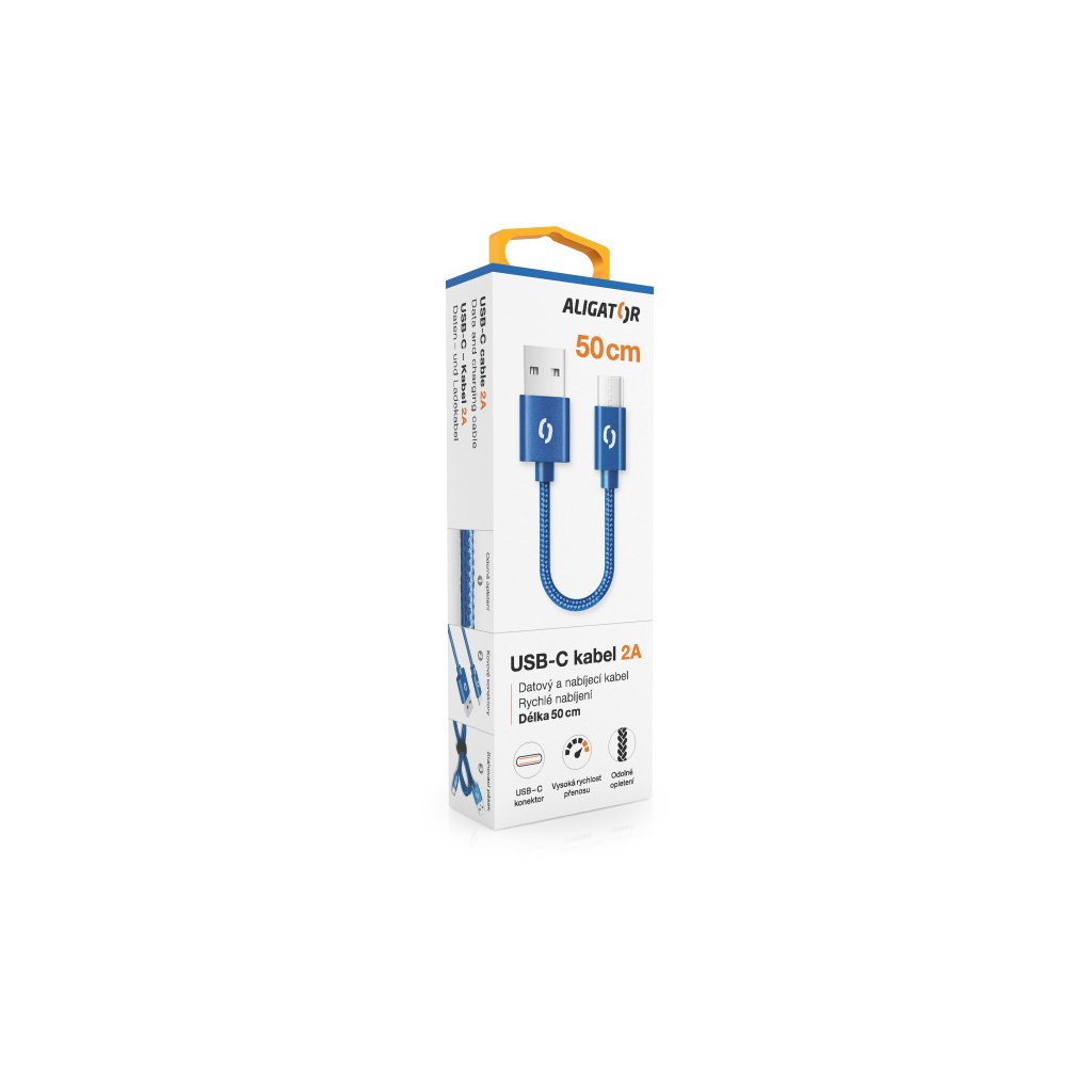 Datový kabel ALIGATOR PREMIUM 2A, USB-C 50cm modrý