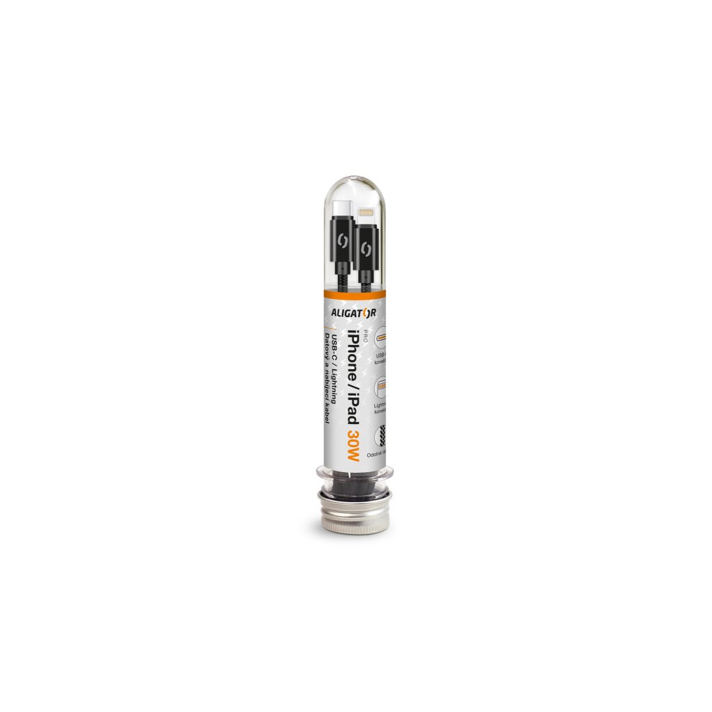 Datový kabel ALIGATOR TUBA 30W, USB-C/Lightning černý