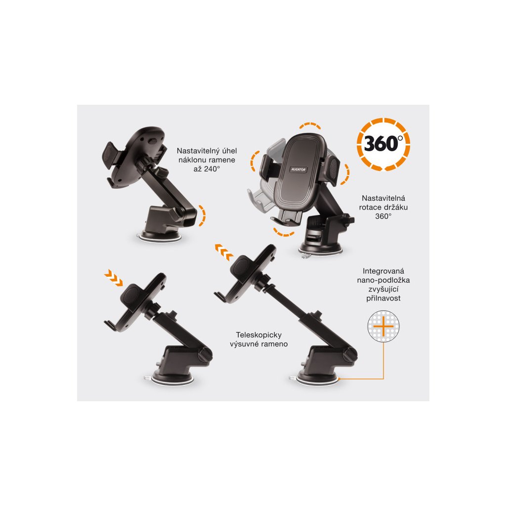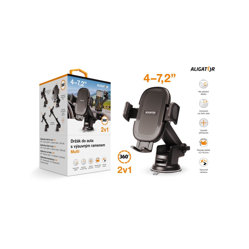 Držák do auta s výsuvným ramenem ALIGATOR Multi na čelní sklo a palubní desku, univerzální