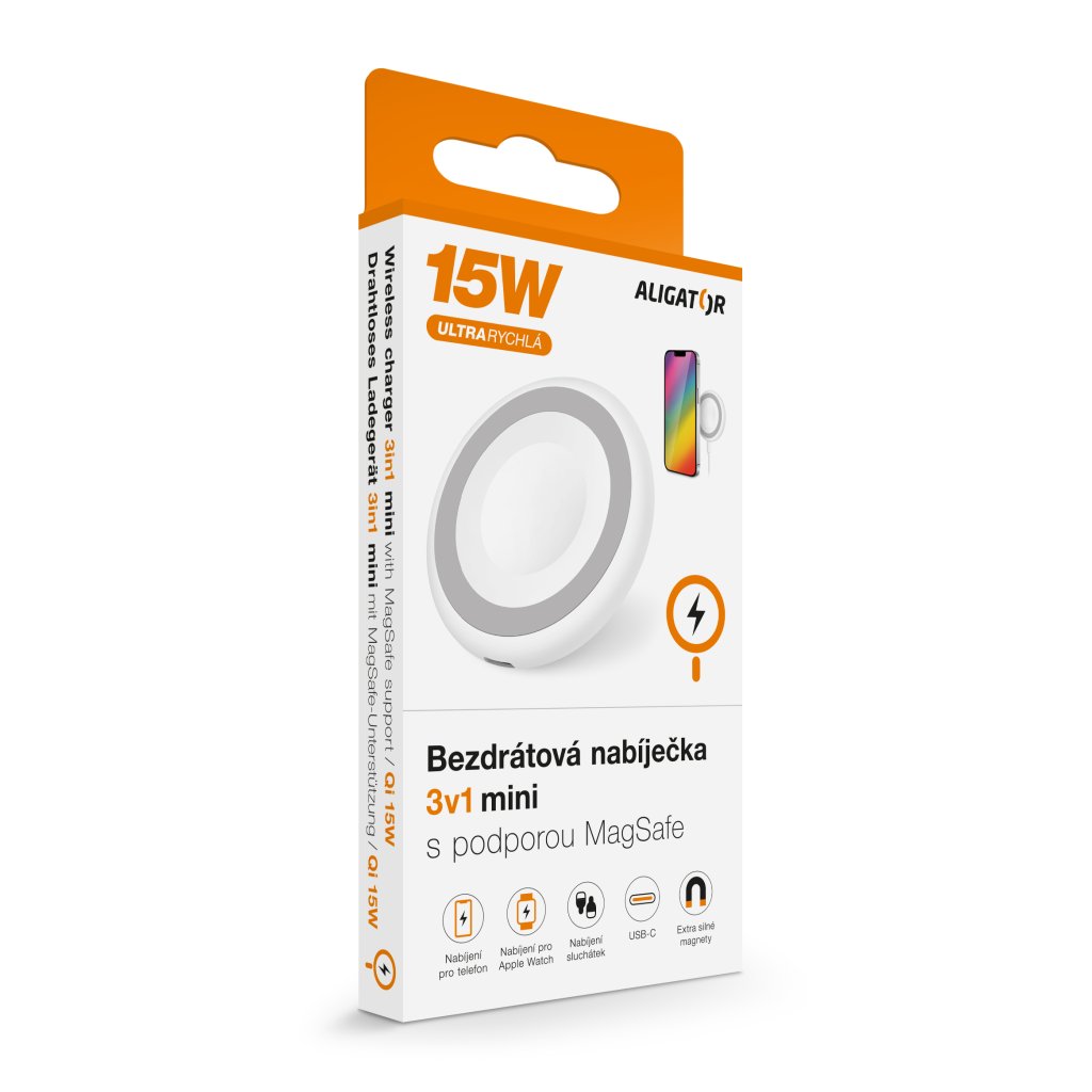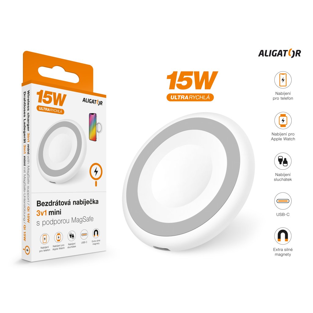 ALIGATOR 3-in-1 mini 15W Wireless Charger, White