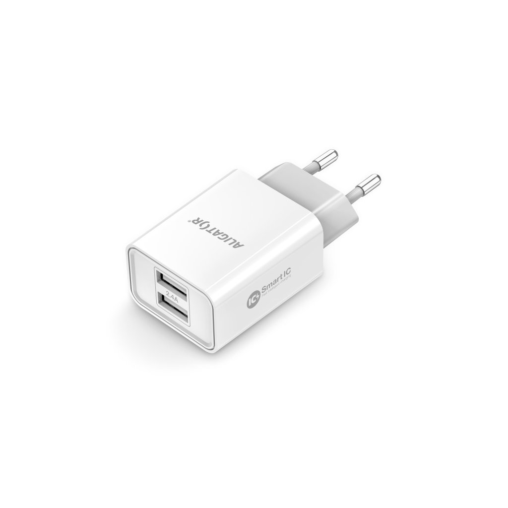 ALIGATOR 2.4A Smart USB Wall Charger, 2xUSB, smart IC, White
