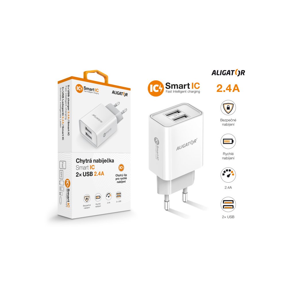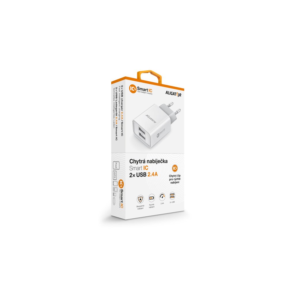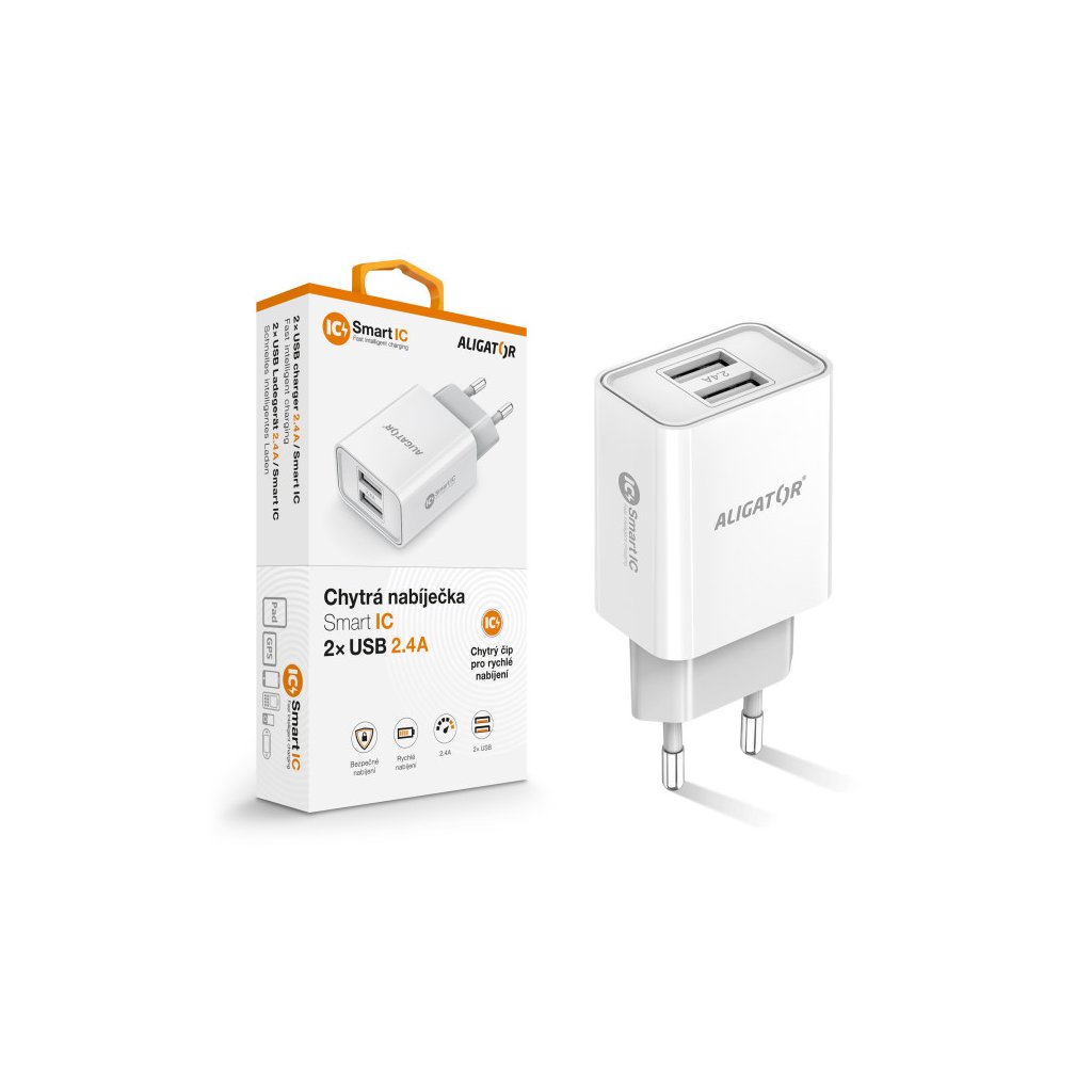 ALIGATOR Charger with 2xUSB output, smart IC, white