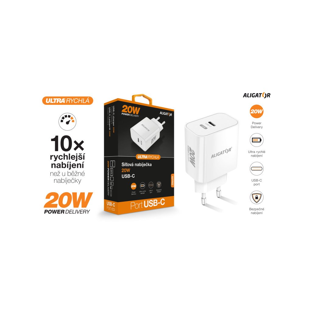 Fast network charger USB-C ALIGATOR Power Delivery 20W