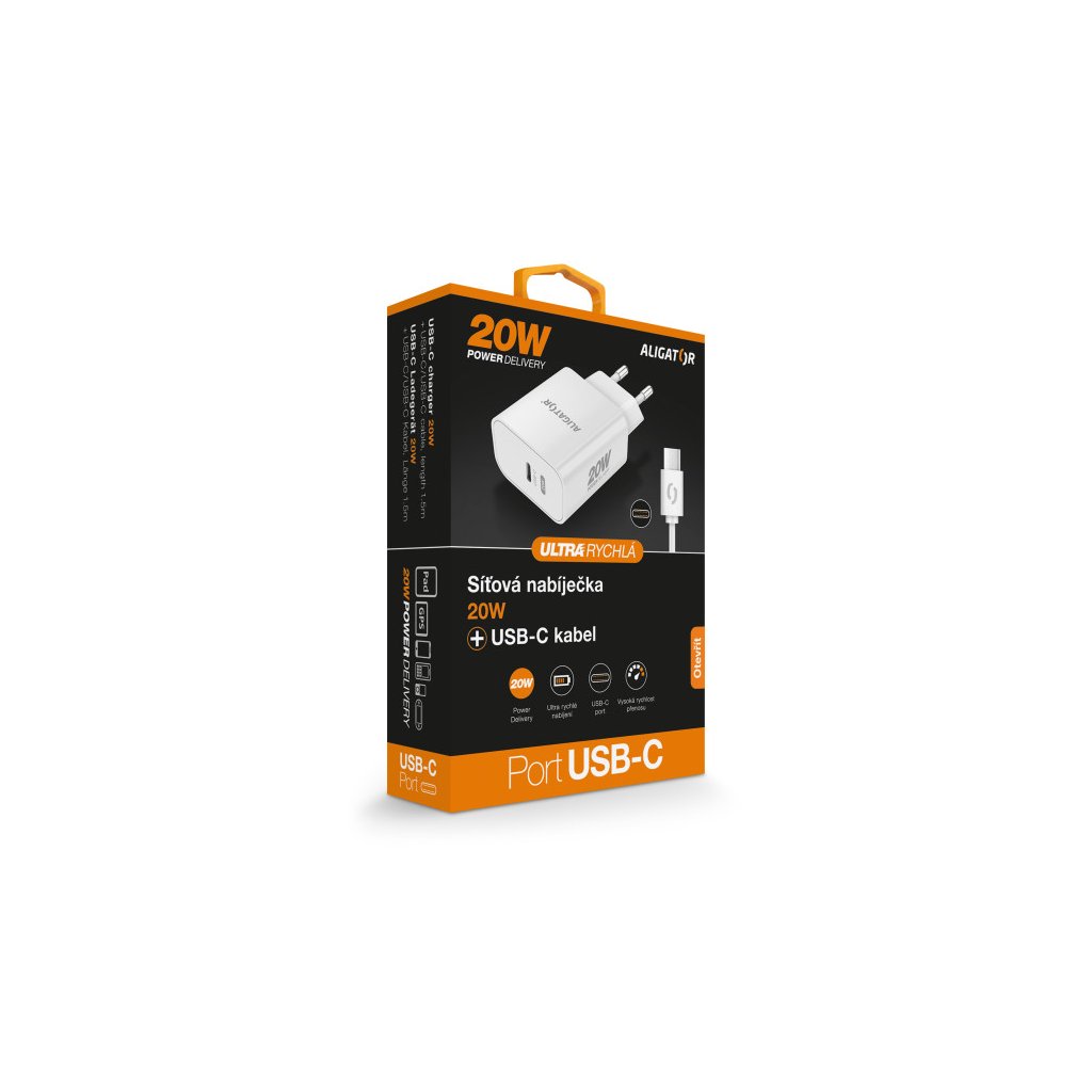 USB-C fast network charger ALIGATOR Power Delivery 20W with USB-C/USB-C cable