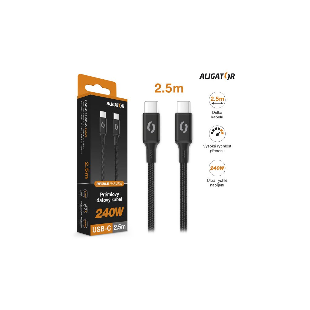 Data cable ALIGATOR POWER 5A 240W, USB-C/USB-C 2.5m