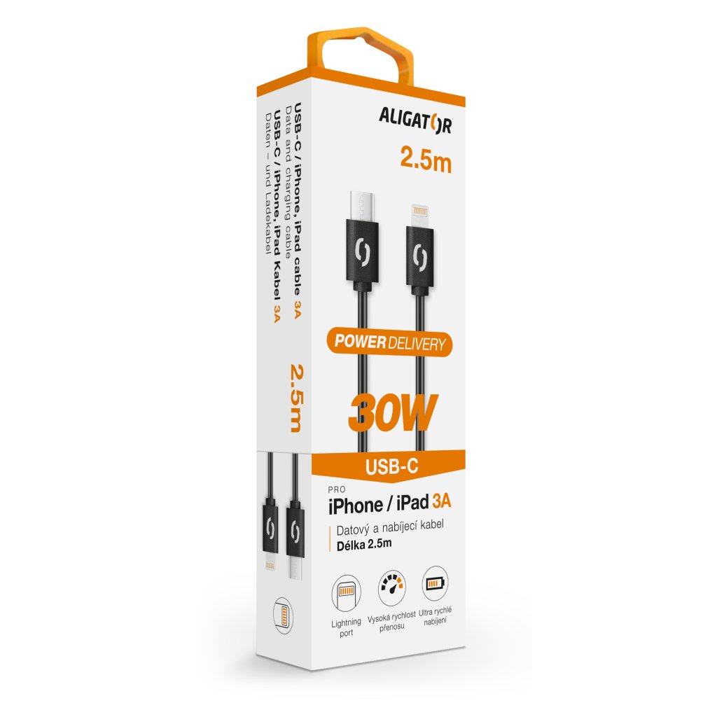 Data cable ALIGATOR POWER 30W, USB-C/Lightning 3A, 2.5m black