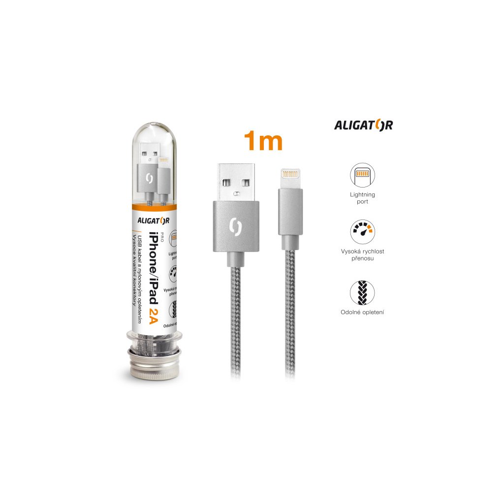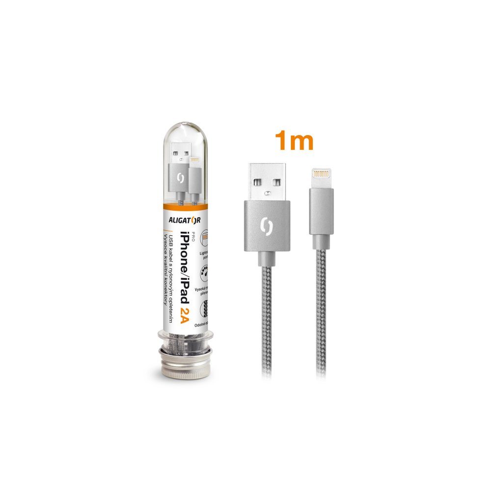 Data cable ALIGATOR TUBA 2A, iPhone lightning gray