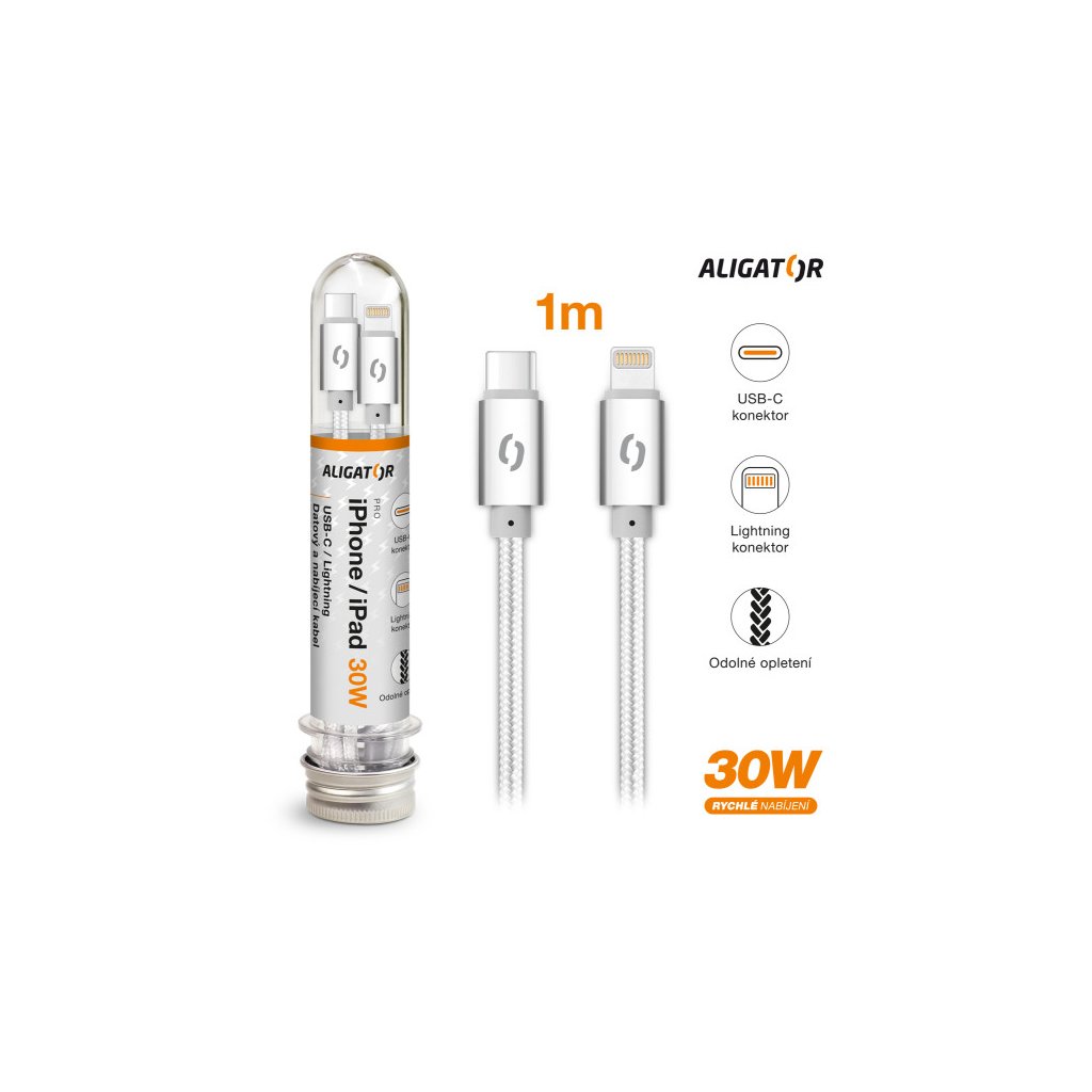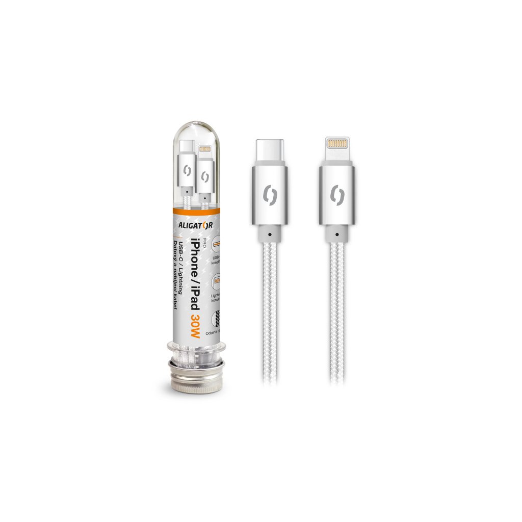 Data cable ALIGATOR TUBA 30W, USB-C/Lightning 1m white