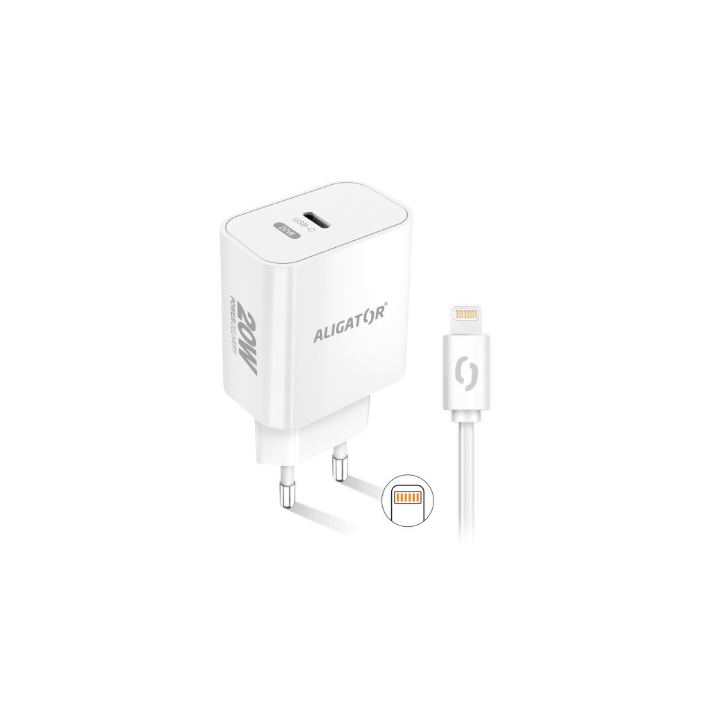 Fast USB-C charger ALIGATOR PD 20W with USB-C/Lightning cable (iPhone), white