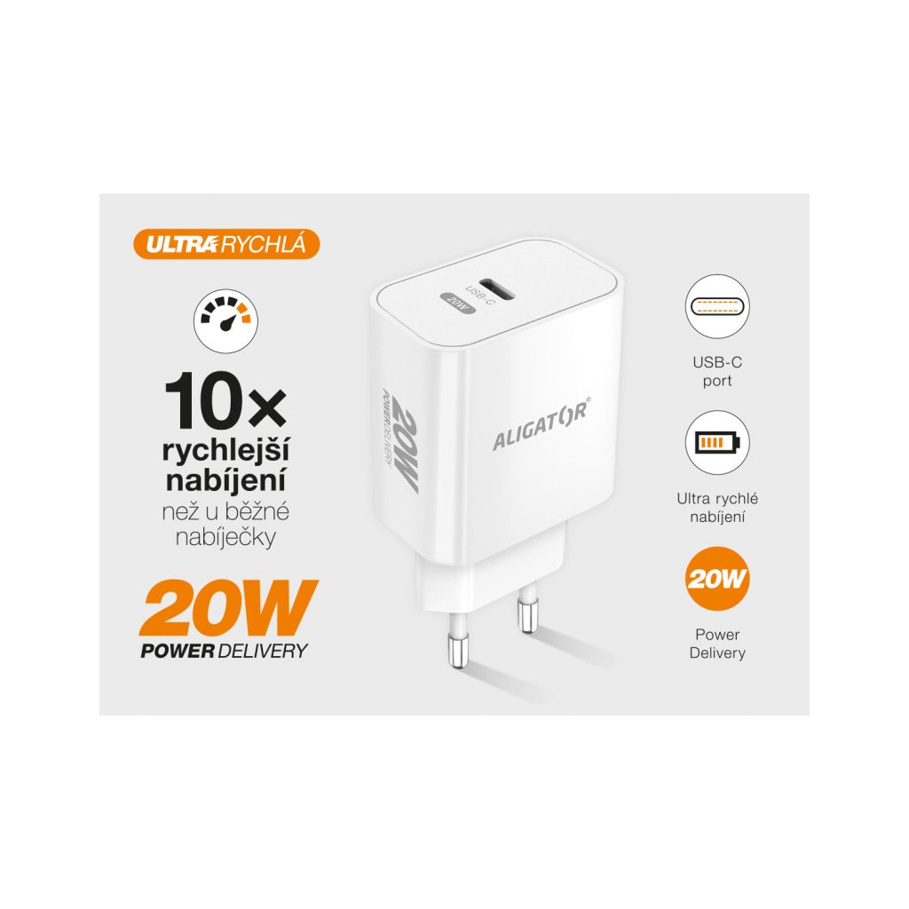 USB-C fast network charger ALIGATOR Power Delivery 20W with USB-C/Lightning cable for iPhone/iPad