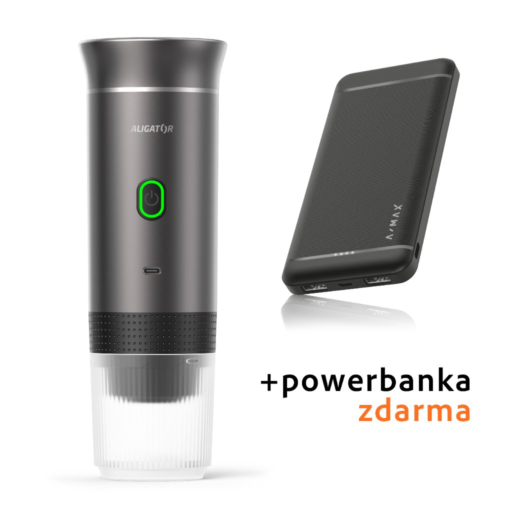 ALIGATOR PortaCaffé 3in1 Black Travel Rechargeable Coffee Maker Set + A-MAX 10,000 mAh Power Bank for free