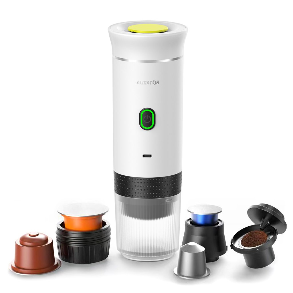 ALIGATOR PortaCaffé 3in1 White Travel Rechargeable Coffee Maker Set + A-MAX 10,000 mAh Power Bank Free