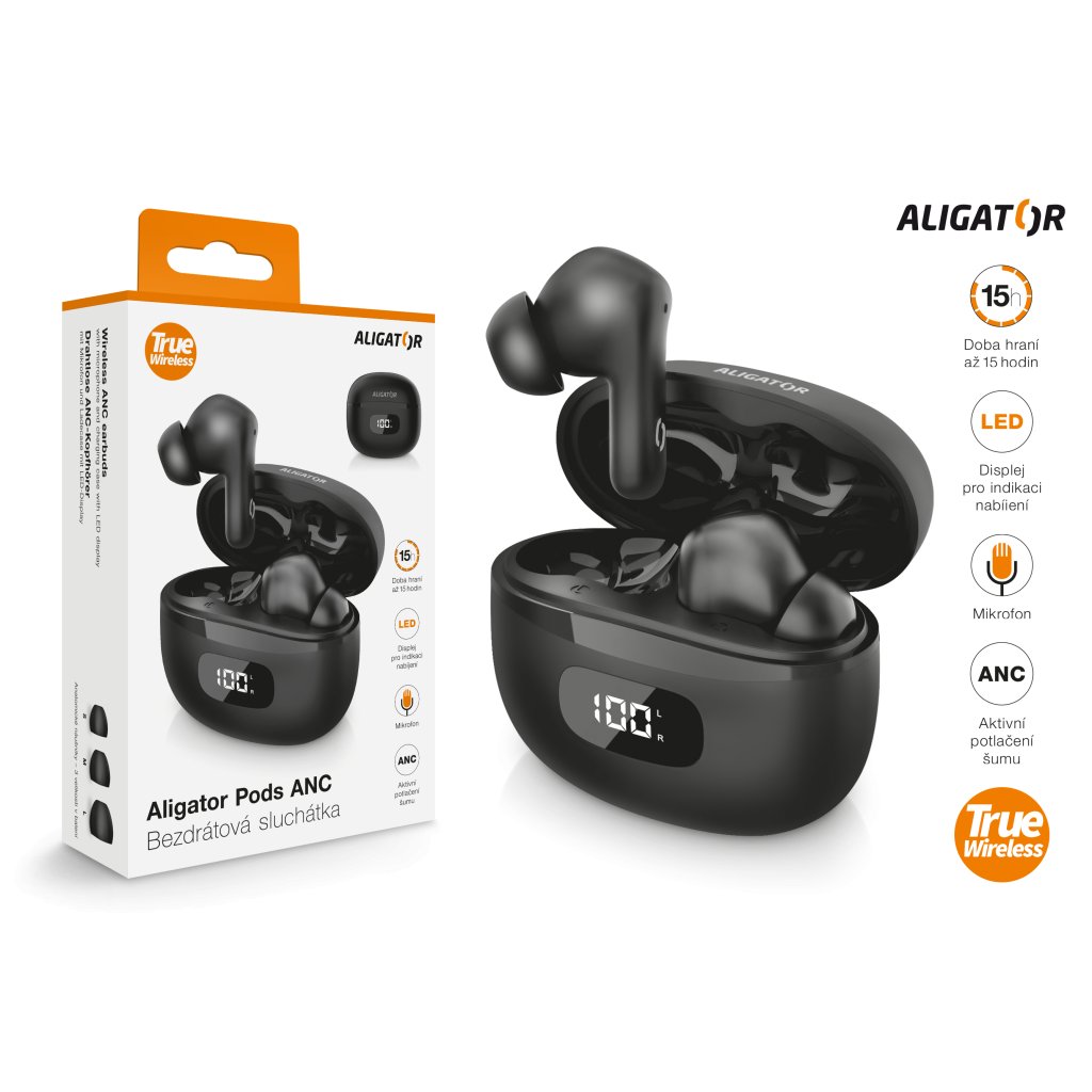 TWS Aligator Pods ANC TWS08 Headphones, Black