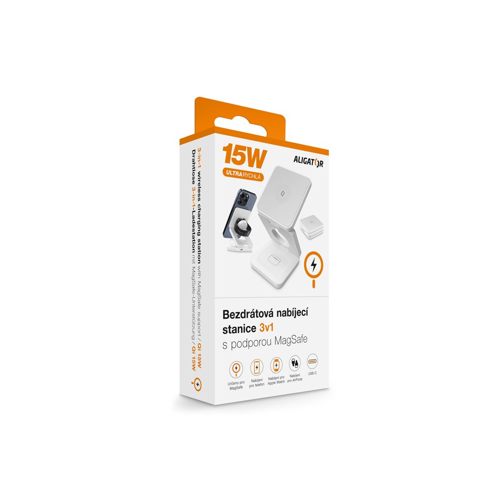 ALIGATOR 3 az 1-ben vezeték nélküli töltőállomás 15W, fehér