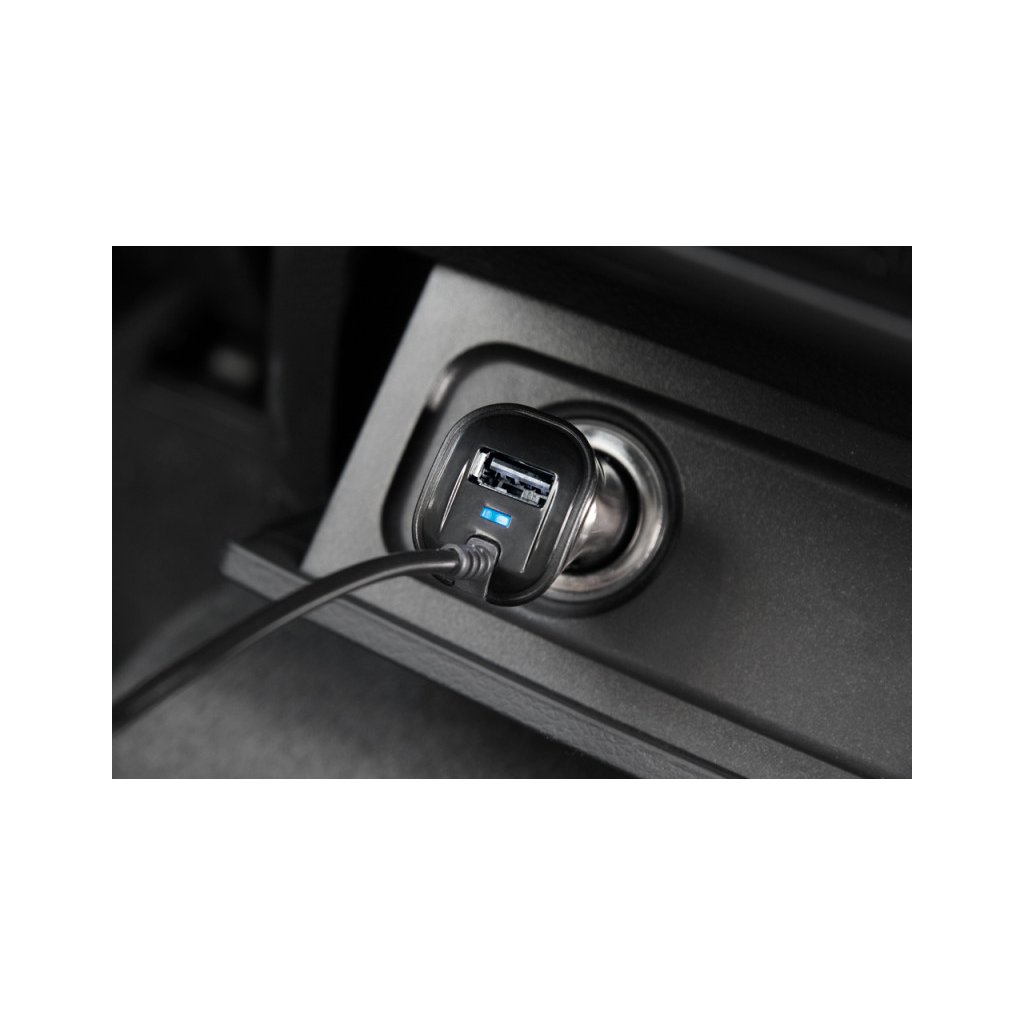 Az új, nagy teljesítményű, fekete színű "Turbo charge" autós töltő microUSB kábellel és USB porttal van felszerelve.
