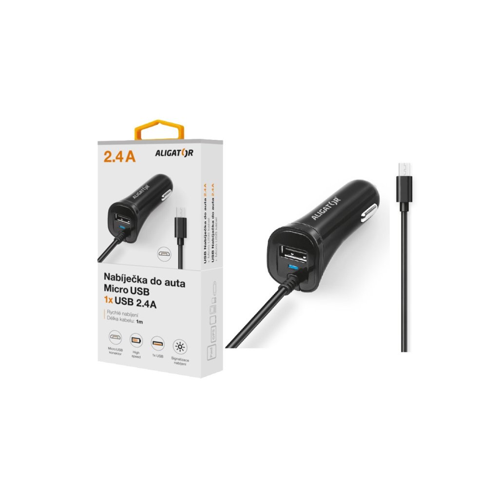 ALIGATOR autós töltő, Micro USB USB kimenettel, 2,4A, fekete