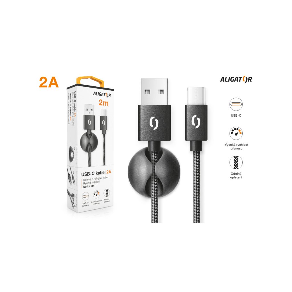 Dat. kab. ALIGATOR PREMIUM 2A, USB-C 2m černý