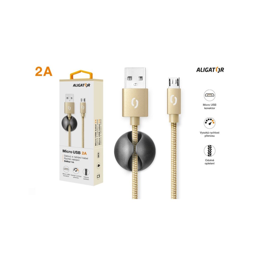 Adatkábel ALIGATOR PREMIUM 2A, Micro USB arany