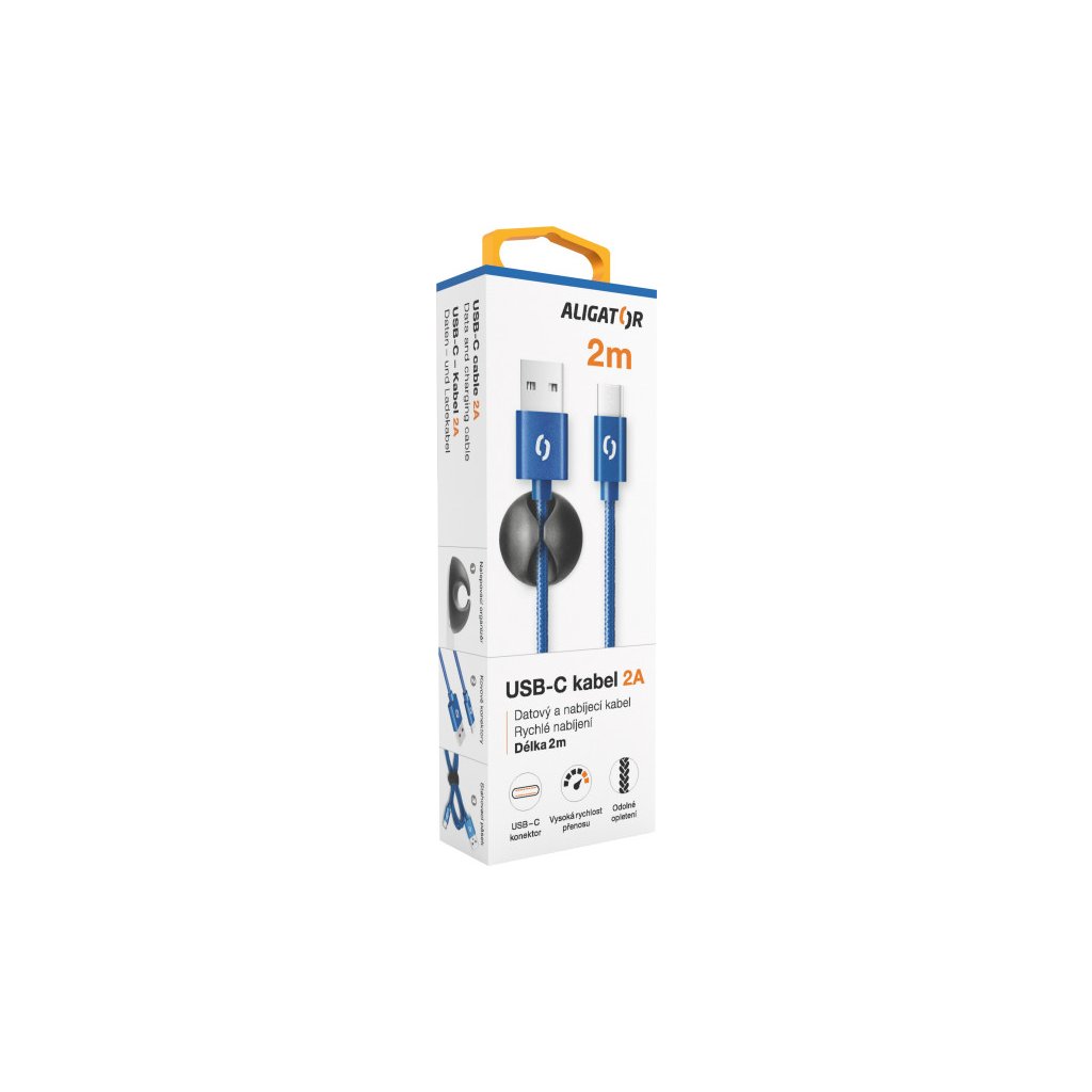 Adatkábel ALIGATOR PREMIUM 2A, USB-C 2m kék