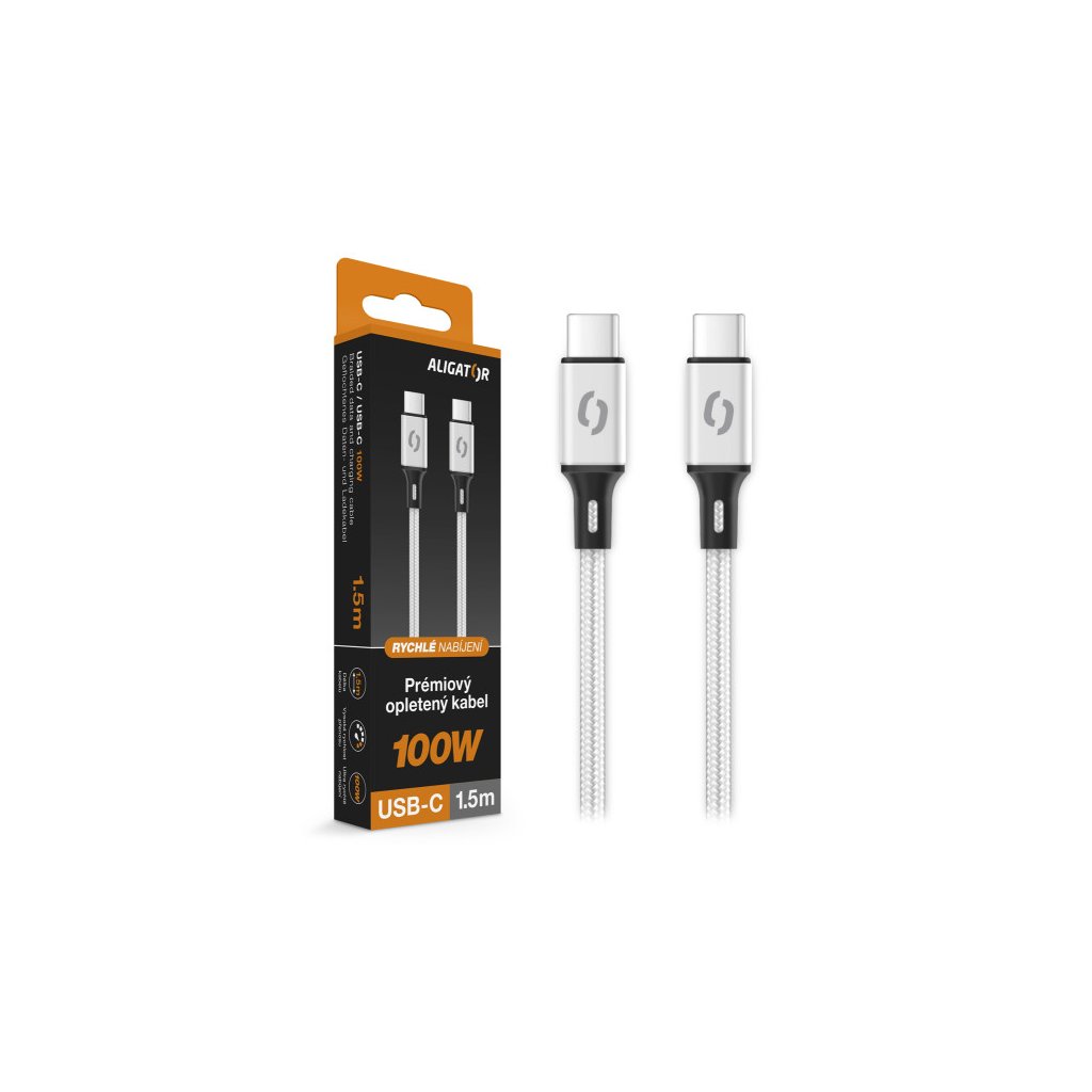 Adatkábel ALIGATOR PREMIUM 5A 100W, USB-C/USB-C, fehér
