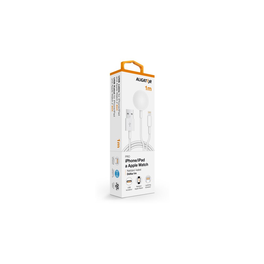 Töltőkábel ALIGATOR 2 az 1-ben iPhone/iPad és Apple Watch készülékekhez, fehér