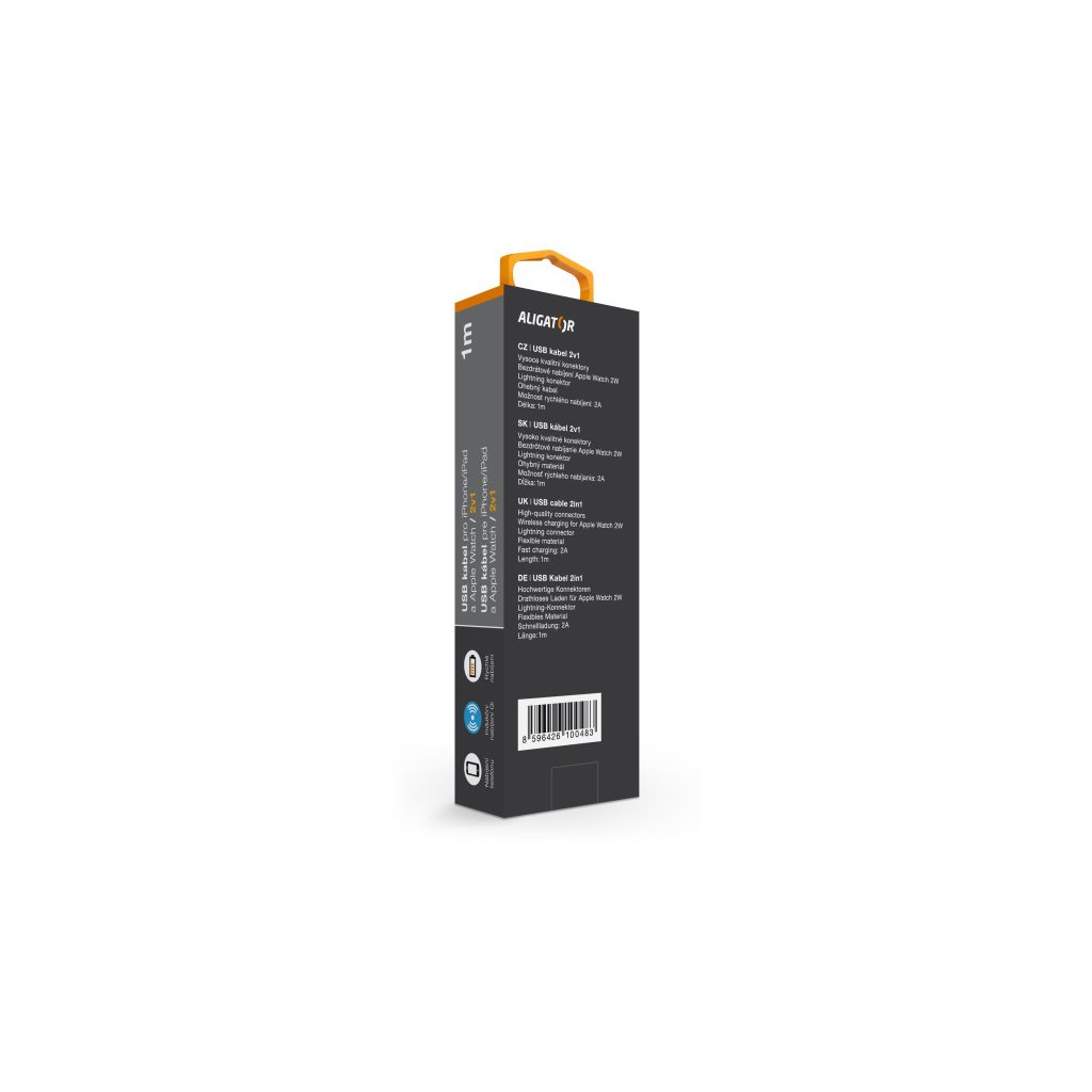 Minőségi USB töltőkábel ALIGATOR 2 az 1-ben iPhone/iPad és Apple Watch számára.