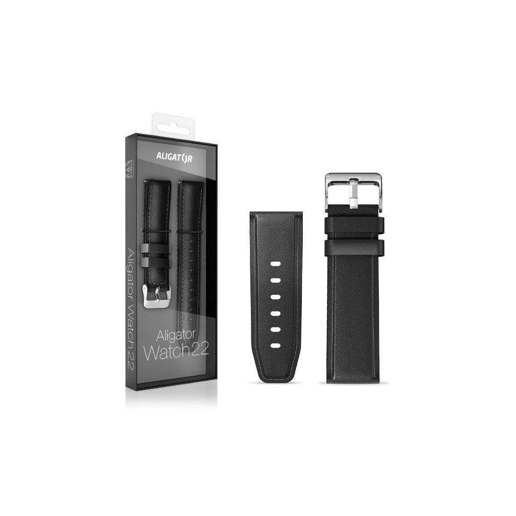 Szintetikus bőr szíj ALIGATOR 22mm, fekete