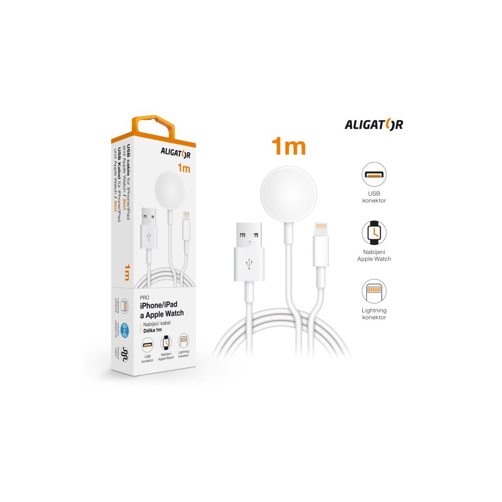 Nabíjecí kabel ALIGATOR 2v1 pro iPhone/iPad a Apple Watch, bílý