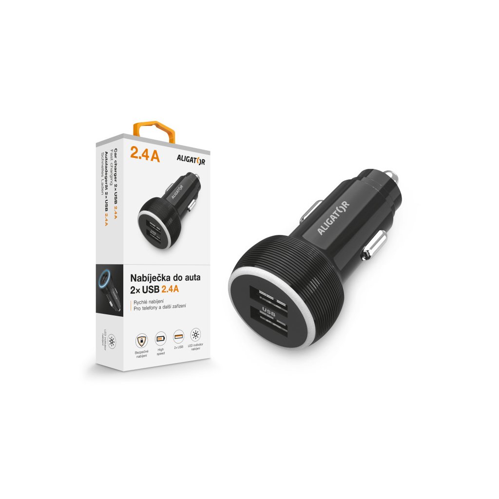 Nabíječka do auta ALIGATOR 2xUSB výstupem 2.4A, černá