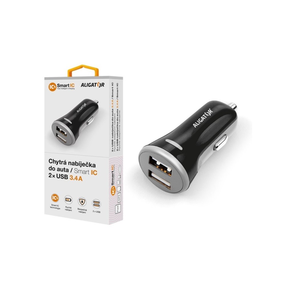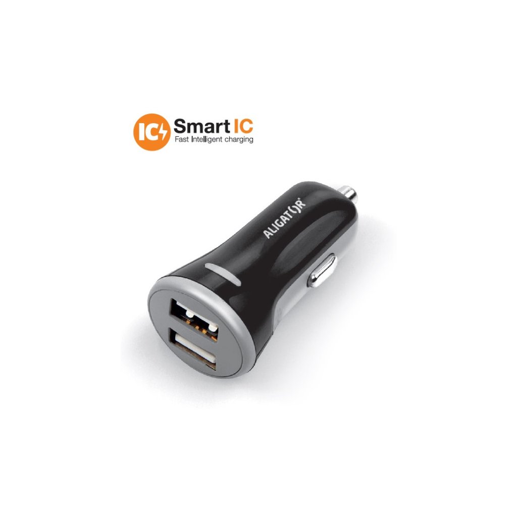 Chytrá nabíječka do auta ALIGATOR 3.4A, 2xUSB, smart IC, černá