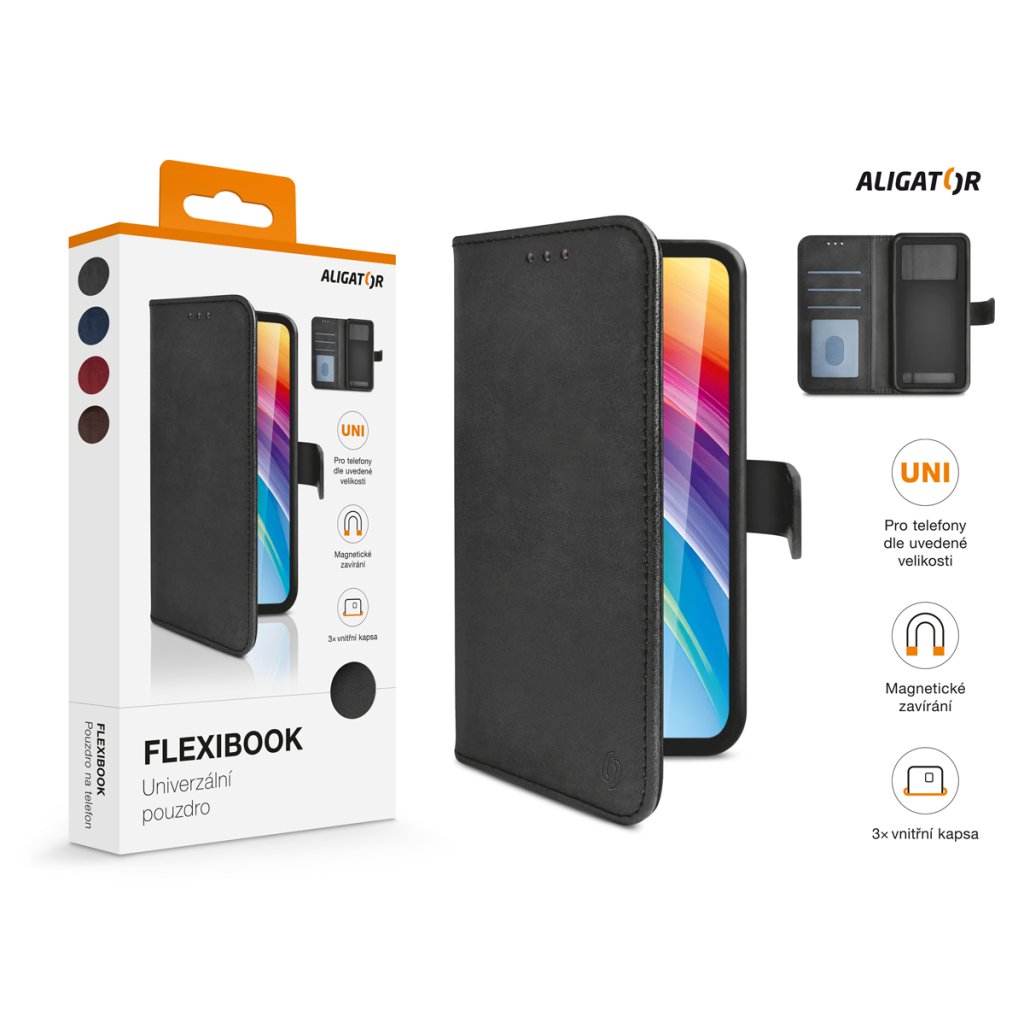 Pouzdro ALIGATOR FLEXIBOOK, pro vel.telefonů 6“-6,8“, černé