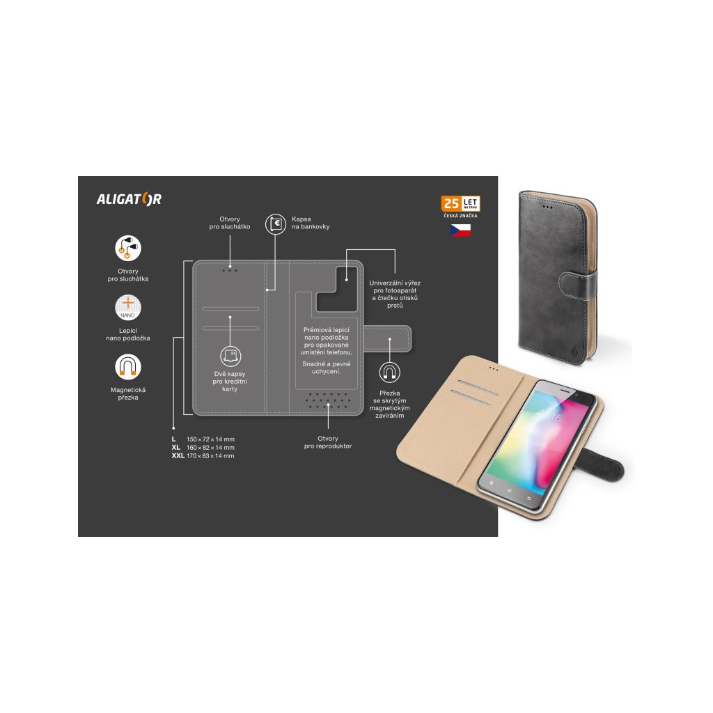 Pro maximální ochranu Vašeho mobilního telefonu doporučujeme používat toto pouzdro v kombinaci s řadou kvalitních univerzálních tvrzených skel ALIGATOR GLASS.