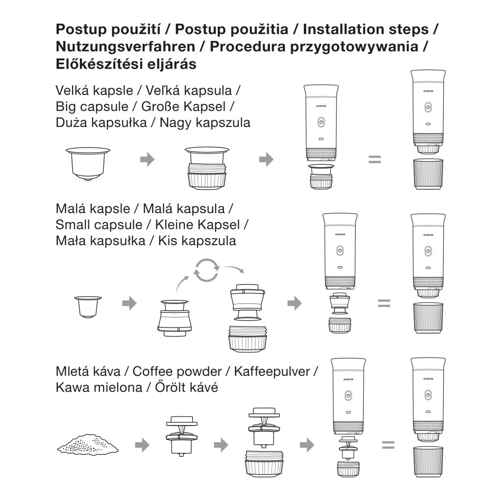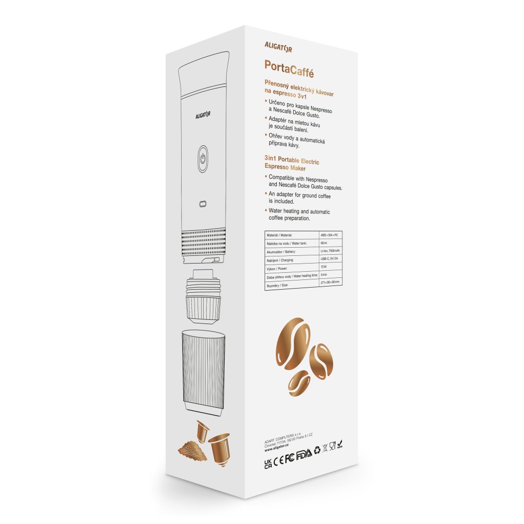 Cestovní nabíjecí kávovar ALIGATOR PortaCaffé 3v1 bílý